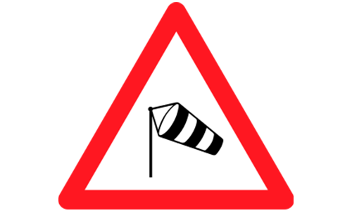 19. Sie sehen ein Windsack-Symbol auf einem dreieckigen Schild. Wie groß ist das Risiko?